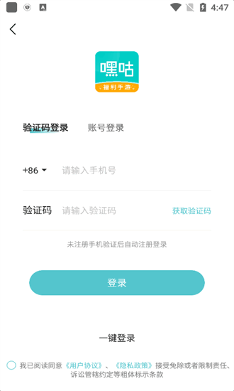 1、下载并安装本站提供的嘿咕游戏盒子最新版,首先打开注册或登录