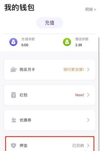 2、找到押金选项,如果充值了显示的是已交纳。