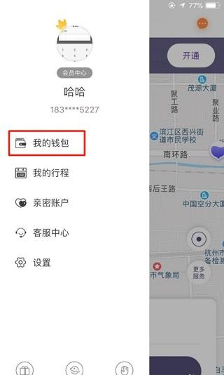 1、首先进入叮达出行app,在个人中心中点击我的钱包。