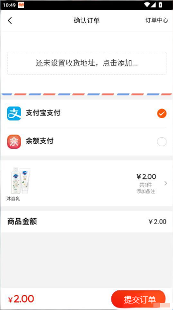 4、设置收货地址点击“提交订单”功能即可立即支付订单购买商品