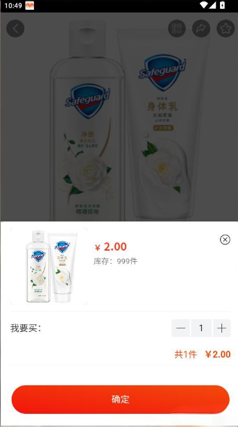 3、点击“+”按钮可增加商品数量点击“确定”功能进入下一步