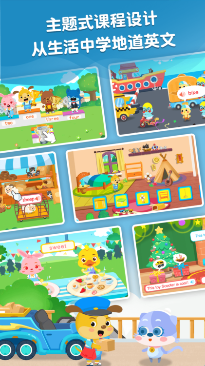 1、原创IP故事体系:打造“麦田小镇”虚拟世界,儿童通过帮助卡通角色完成任务推进剧情。每单元配套一首原创英文儿歌,歌词与课程内容紧密关联。
