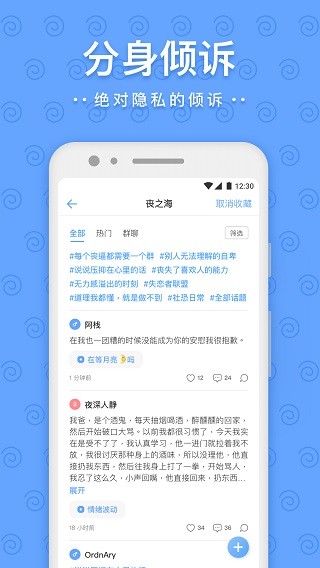 一罐app是一款新型社交软件,它所涵盖的用户群体是非常广的,在这里你可以和大家畅所欲言,用户可以根据需要进行选择宣泄情绪,没有人知道你是谁,非常棒的匿名社交活跃圈。各式各样的主题聊天室,宣泄情绪、真身社交等内容全面,有需要的小伙伴们快来下载体验吧!