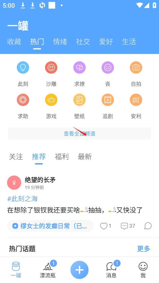 2、在主页找到 “查看全部频道”入口并点击,进入频道页面。这里包含多种分类频道,选择你感兴趣的频道点击进入,即可浏览该频道下的相关内容。