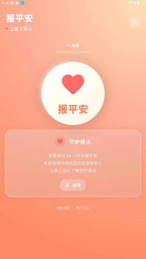 4、设置好后,点中间的报平安即可让家人安心。