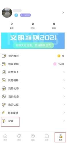 1、在我的页面中点击设置按钮;
