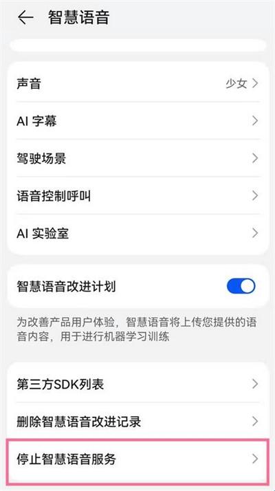 3、接着点击【停止智慧语音服务】,选择停止服务即可。