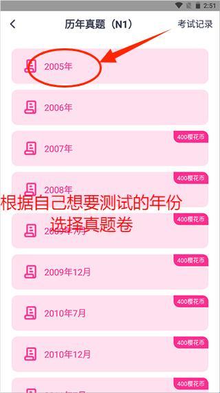 2、进入考级界面,选择“历年真题”,选择考级年份。