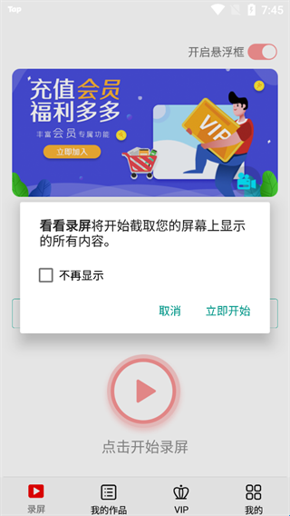 看看录屏提供专业的手机屏幕录制与视频编辑功能,能够帮助你快速开启录屏编辑。软件操作简单且不限制时长,一键后台自动录制,不管是你想录下自己的游戏高光时刻,还是想给朋友展示怎么操作某个应用,看看录屏都能帮你搞定,是您生活的好帮手,快来下载体验吧。