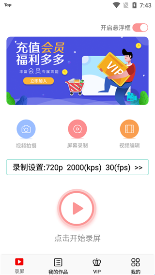 1、灵活控制录屏的开始和结束:悬浮窗、通知栏、摇一摇多种方式控制录屏开始/结束。