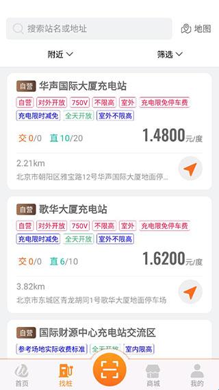 4、除了首页推荐的充电桩外,大家还可以根据自己所在位置,筛选距离自己最近的充电桩。