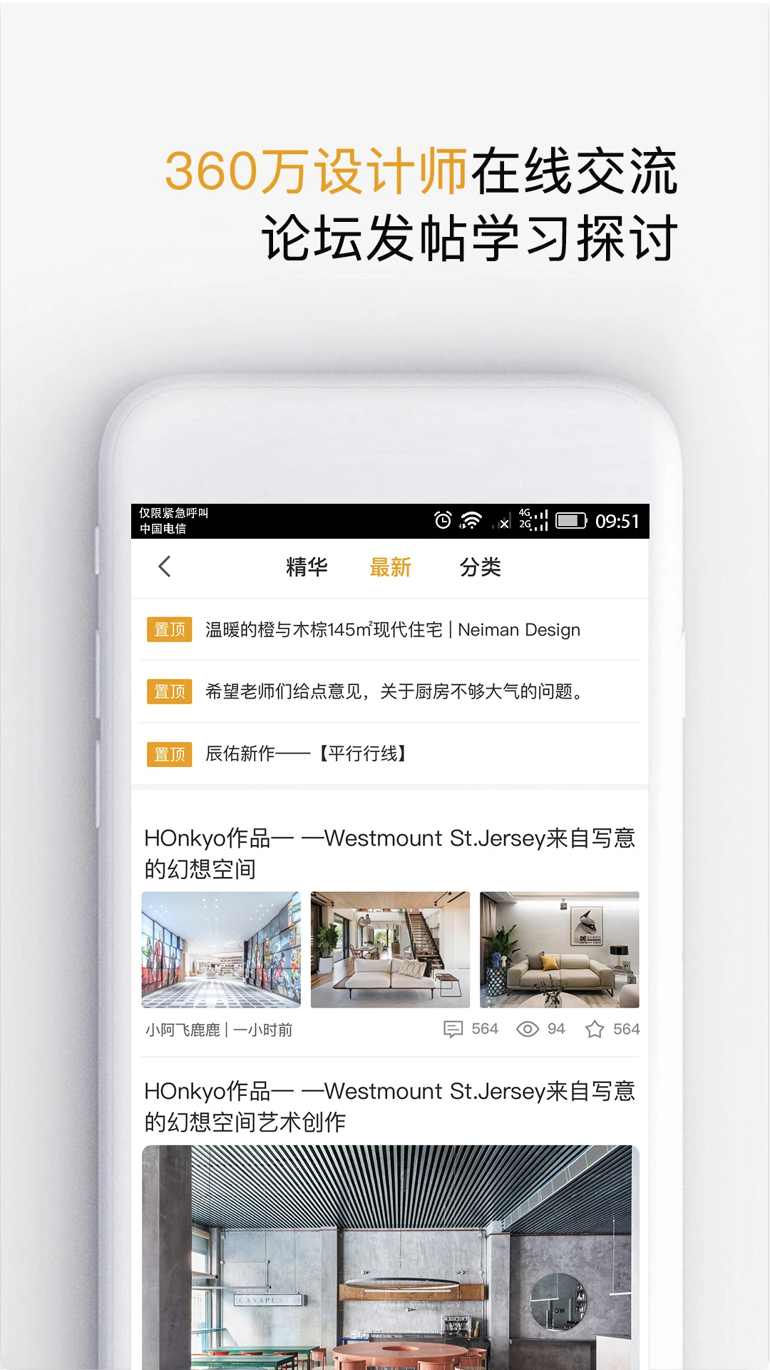4、设计灵感:VR家装方案每天更新,全球精选效果图,激发你的设计灵感。
