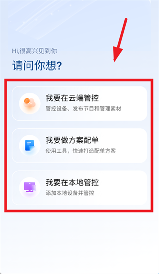 2、根据需求选择我要在云端管控,我要做方案配单,我要在本地管控