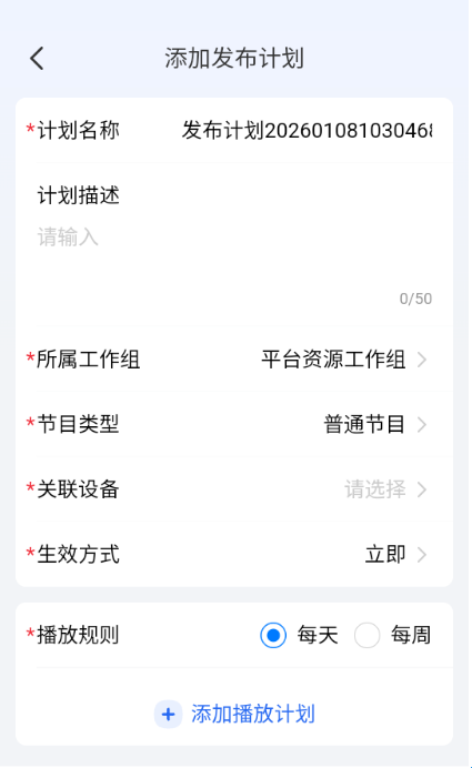 3、之后就可点击下方的“+添加发布计划”按钮来进行下一步。