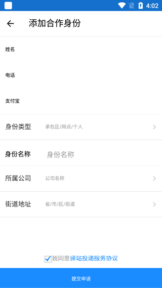 5、按要求填写信息后,勾选下方同意,点击提交申请即可