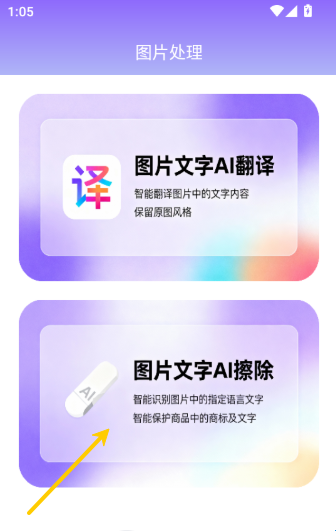 2、之后就可点击选择“图片文字AI擦除”按钮来进行下一步。