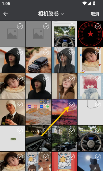 4、在“相机胶卷”中选择需要的图片来一键上传,点击“图片”进行上传。
