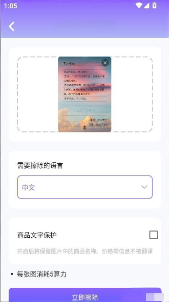 5、如此就可选择需要擦除的语言,点击下方的“立即擦除”按钮来实时擦除文字。