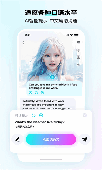 5、AIGC技术驱动:基于先进的人工智能技术,提供智能口语对话体验。