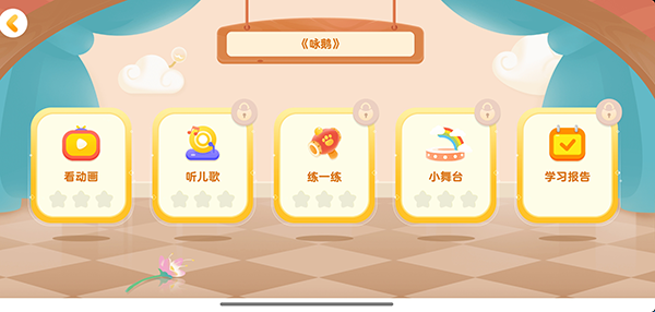 5、在毛豆爱古诗App中,每一个古诗学习课程中都需要先通过“看故事”“听儿歌”后才能解锁“练一练”。同时,在练一练模式中,小朋友们需要根据之前学过的内容里回答古诗词问题,答对了即可获取金豆。