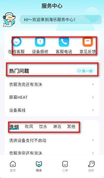 4、点击服务,遇到什么问题都可以在哪里解决