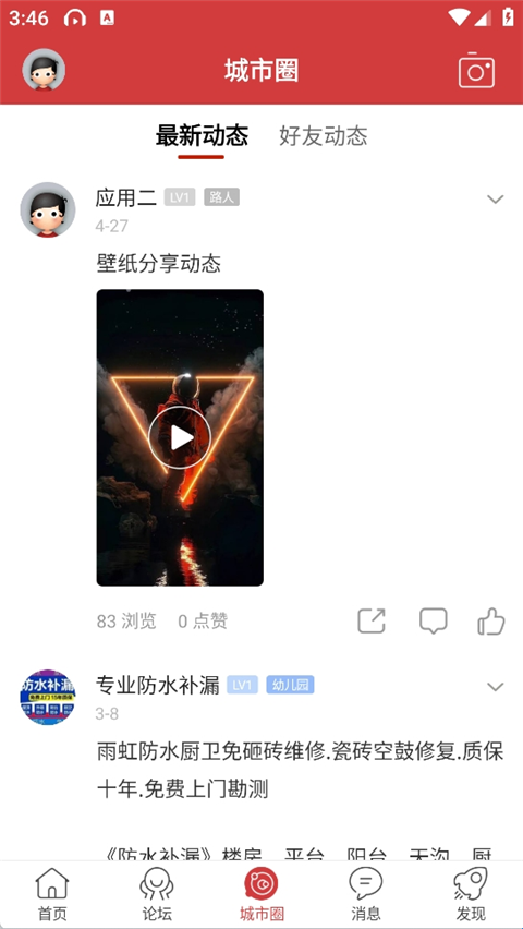 3、在城市圈中我们可以看到当地朋友发布的动态,当然我们也可以自己进行分享;