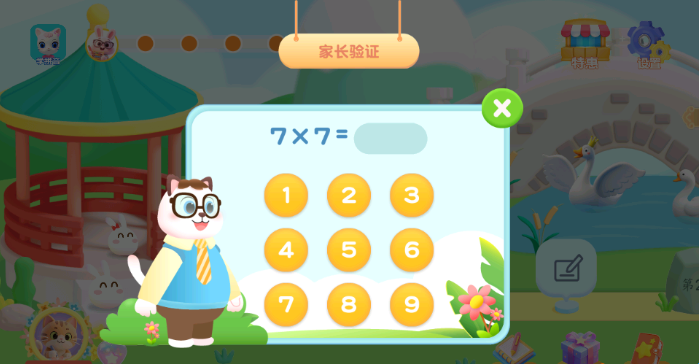 4、然后就可对“家长认证”的乘法口诀表进行输入,输入数字来进行下一步。