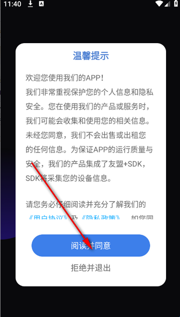 1、打开VideoCollage软件,点击同意隐私保护。
