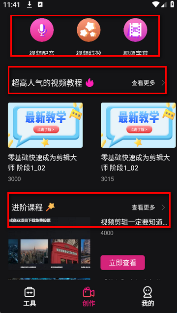 3、点击创作,查看课程。