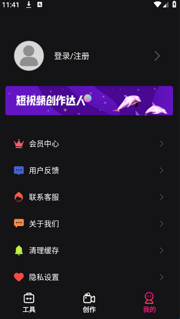 4、点击我的,登录后你创作的视频都会保存。