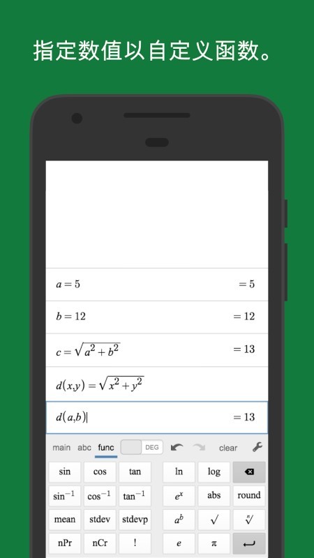 Scientific手机版除了基本运算外,速度超快,性能强大,还提供更加丰富的功能,例如,你可利用该计算器自带的多种函数来探究三角学、统计学及组合数学等等。你也可以定义和评估自己的函数 —— 所有这一切都是免费的!