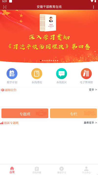 安徽干部教育在线是专门为安徽党员干部打造的一款移动学习教育平台,平台拥有专题班培训,最新的新闻动态,通知公告,广大的党员,干部们可以随时随地在这里学习,关于社会治理,反腐倡廉,理想信念,经济建设,依法治相关的课程知识,结合自身的实际情况,针对性的进行学习!