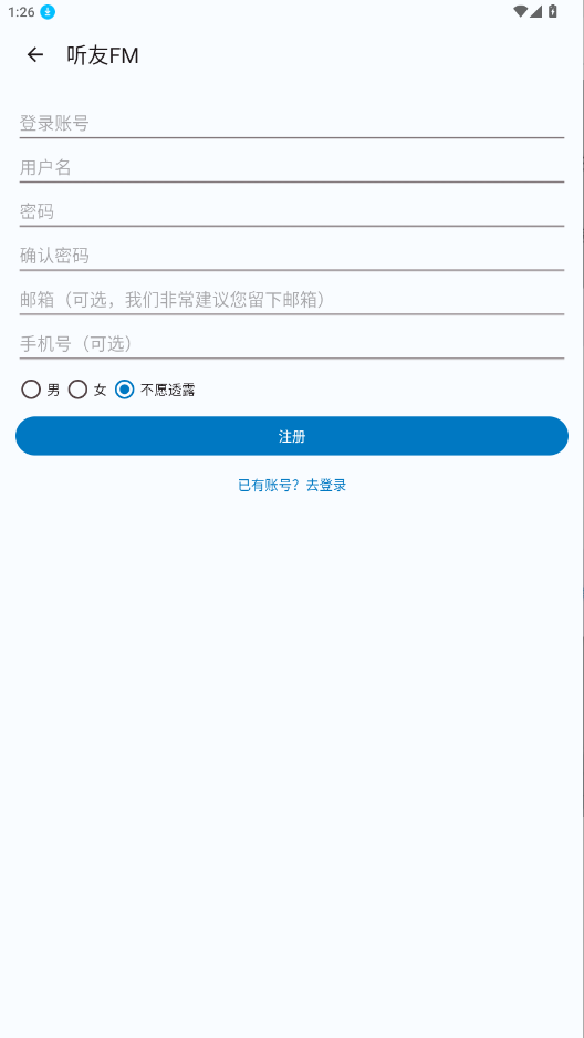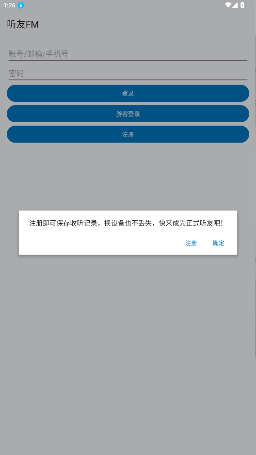 1.打开,进入登录页面,无账号可以选择游客登录或者注册。
