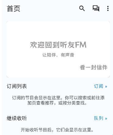 2.进入主页显示订阅列表.继续收听.收藏等。