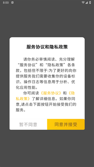 1、下载安装好吉姆超市app,看到如下图的弹窗直接点击同意。