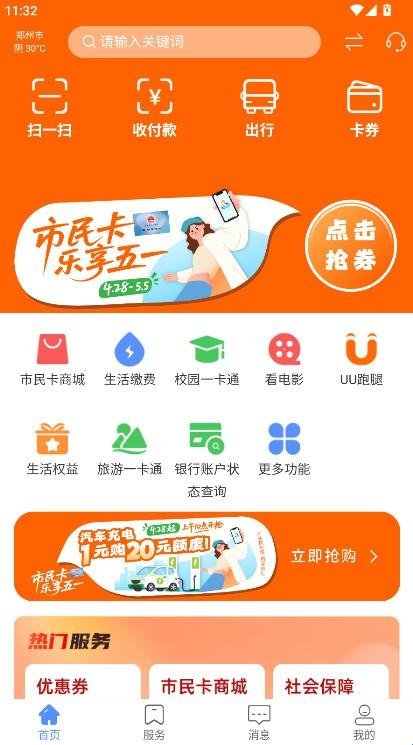郑州市民卡,是搭建郑州市居民服务一卡通服务管理模式的移动端载体之一,与社会保障卡线下应用相结合,为广大用户提供更加方便快捷的民生服务,实现便民服务多样化,增进民生福祉,提高社会服务管理水平,充分体现居民服务一卡通“便民、惠民、利民”的服务理念。用户不仅能使用“郑州市民卡”乘地铁、坐公交、打出租、叫跑腿,完成便捷支付、线上购物、文旅购票、汽车充电等,还可以体验便捷、安全的普惠金融服务。