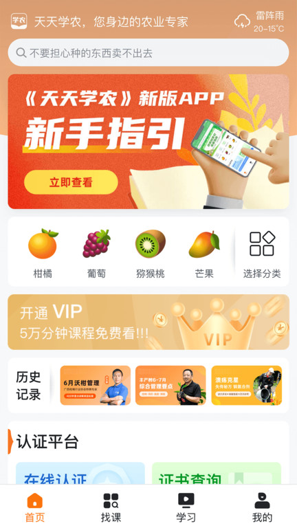 天天学农是一个专为农民打造的互联网农技知识学习平台。平台携手数百名农技专家,制作出多样化的农技学习精品课程,帮助农民提升种植水平,实现增产增收。