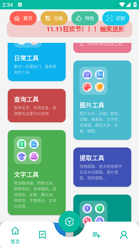 这款软件的界面ui设计非常好看,而且还可以根据用户需要的功能来进行调整,软件整合我们日常会碰到的各类功能,简直万能的感觉!宇宙工具箱主要包含日常类、图片、文字、提取、计算、开发等几大块功能,全部都是免费提供给用户使用的,轻松满足你的日常需求。