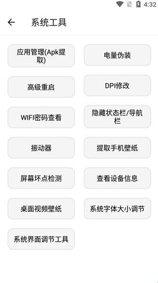 7、点开系统工具,拥有应用提取、电量伪装、高级重启、DPL修改等等;