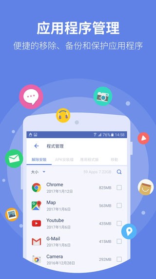 能够全面清理垃圾文件、无用缓存、以及软件卸载后残留的文件,确保您的手机始终保持整洁有序。此外,PowerClean官方版还能智能关闭后台运行的应用程序、清理内存、加速系统运行,通过系统工具彻底停止应用程序、阻止反复重启,最大限度释放内存,延长电池寿命。值得一提的是,尽管功能强大,但其体积和资源占用仅为同类应用的20%,是您手机的最佳伴侣。