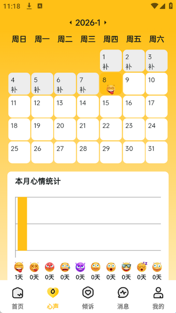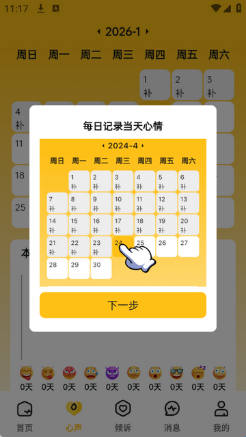 2、点击心声记录每日当天心情