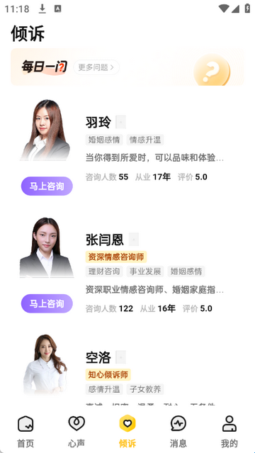 3、点击倾述,可选择资深职业感情咨询