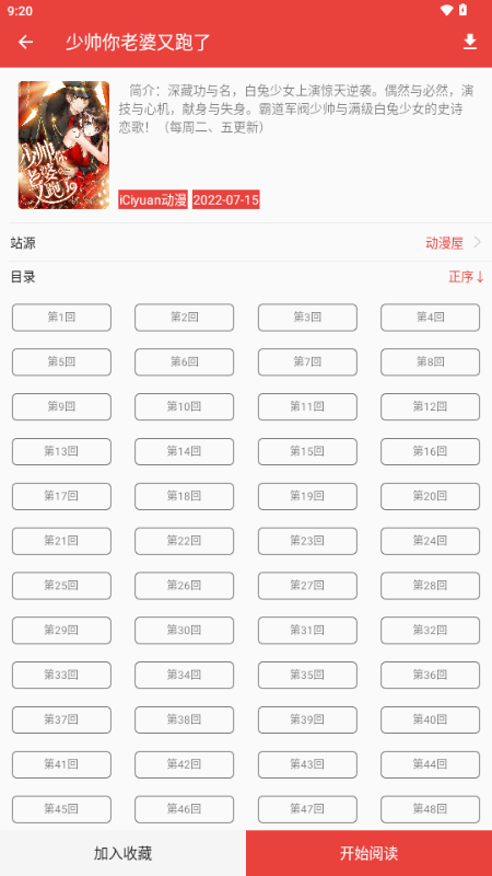 3、进入漫画详情页后点击“开始阅读”选项。