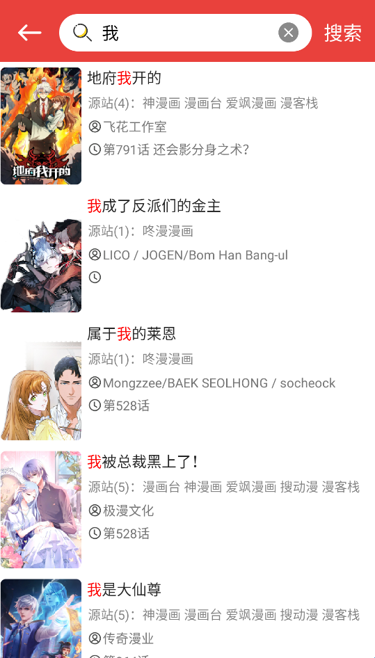 2、在搜索页面中可以输入关键词进行检索漫画。