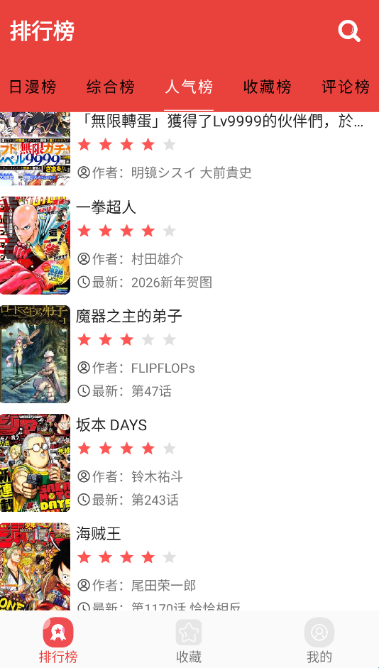 1、下载安装并打开软件,在排行榜页面中有众多精选漫画推荐。