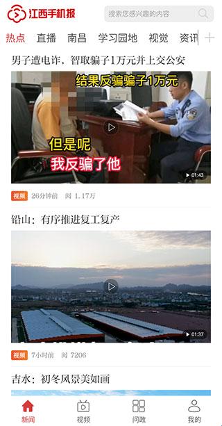 1、在本站下载安装江西手机报app并打开,我们首先看到的就是新闻页,这里也为我们细分为热点、直播、南昌、学习园地、视觉、资讯、5G等板块。