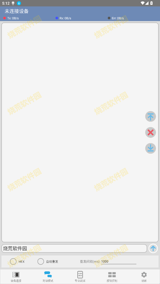 4、在连接成功后,界面最上方的状态栏会显示已经连接的设备,并且显示当前蓝牙连接的数据收发的情况。