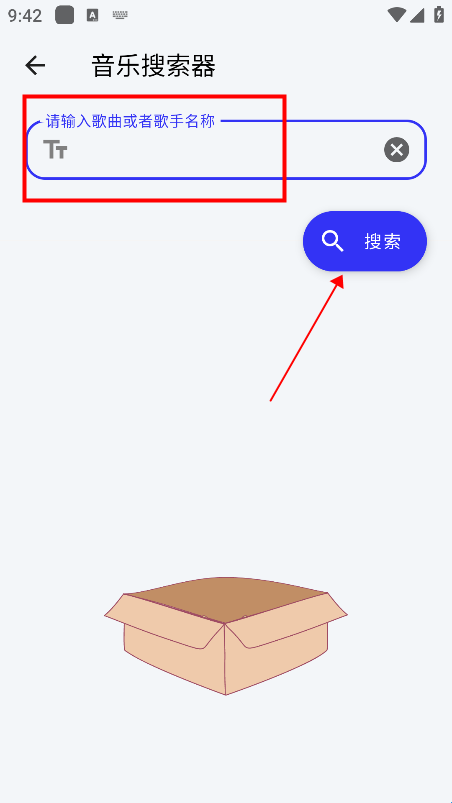 2、点击进入音乐搜索器页面,在搜索框输入歌曲或者歌手的名字。