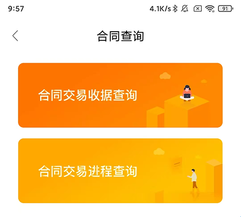 2、进入交易查询页面后,选择【合同交易进程查询】或【合同交易收据查询】。