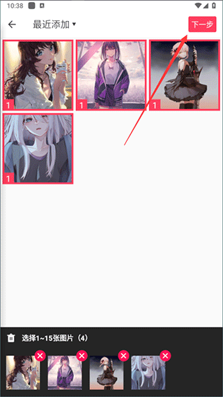 2、小编在这里以【自由拼图】为例,你们喜欢的话可以选择【模板拼图】,选择需要拼图的图片,然后点击【下一步】;